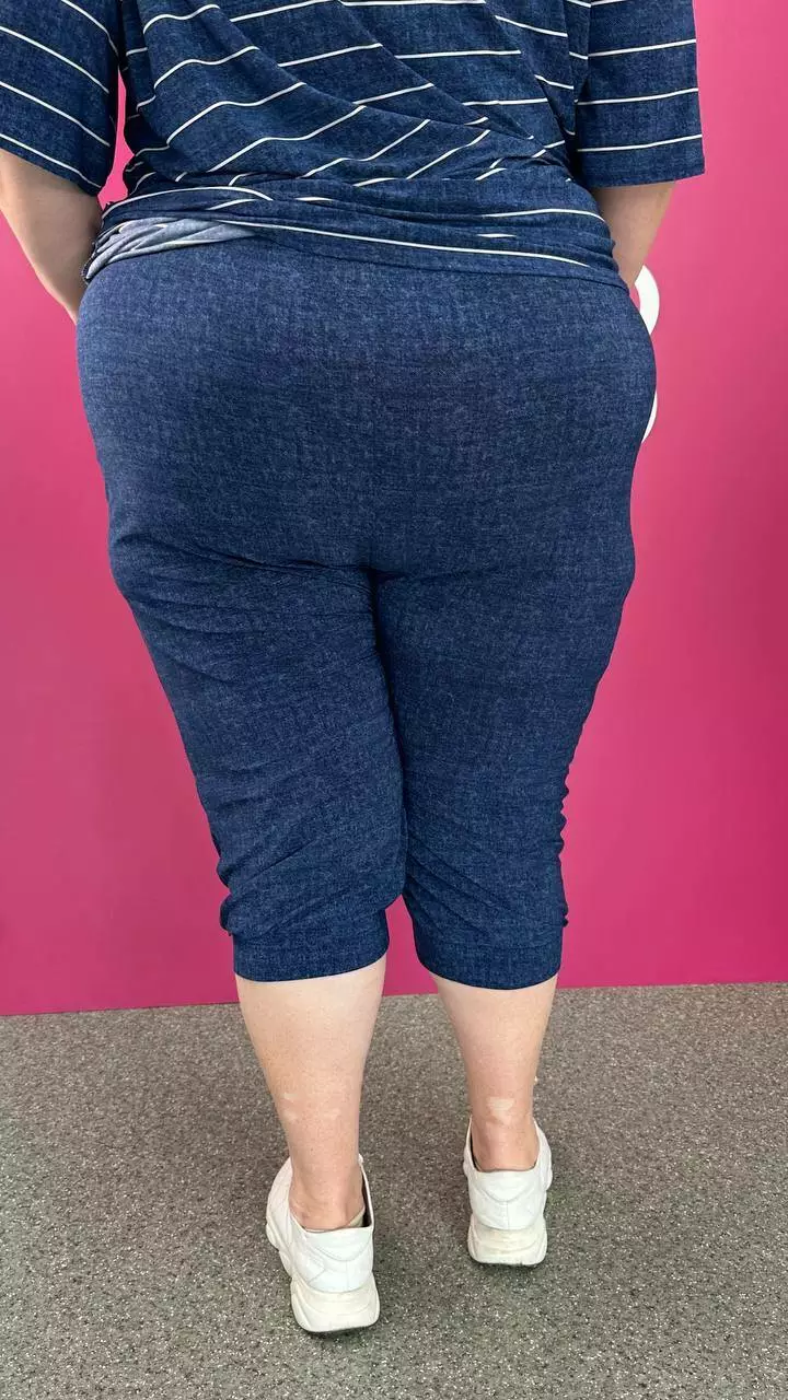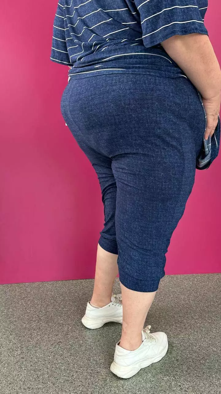 Вільні капрі з високою посадкою, пояс на гумці, низ на манжеті.