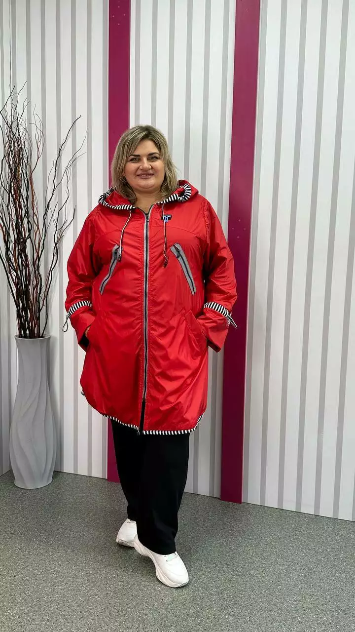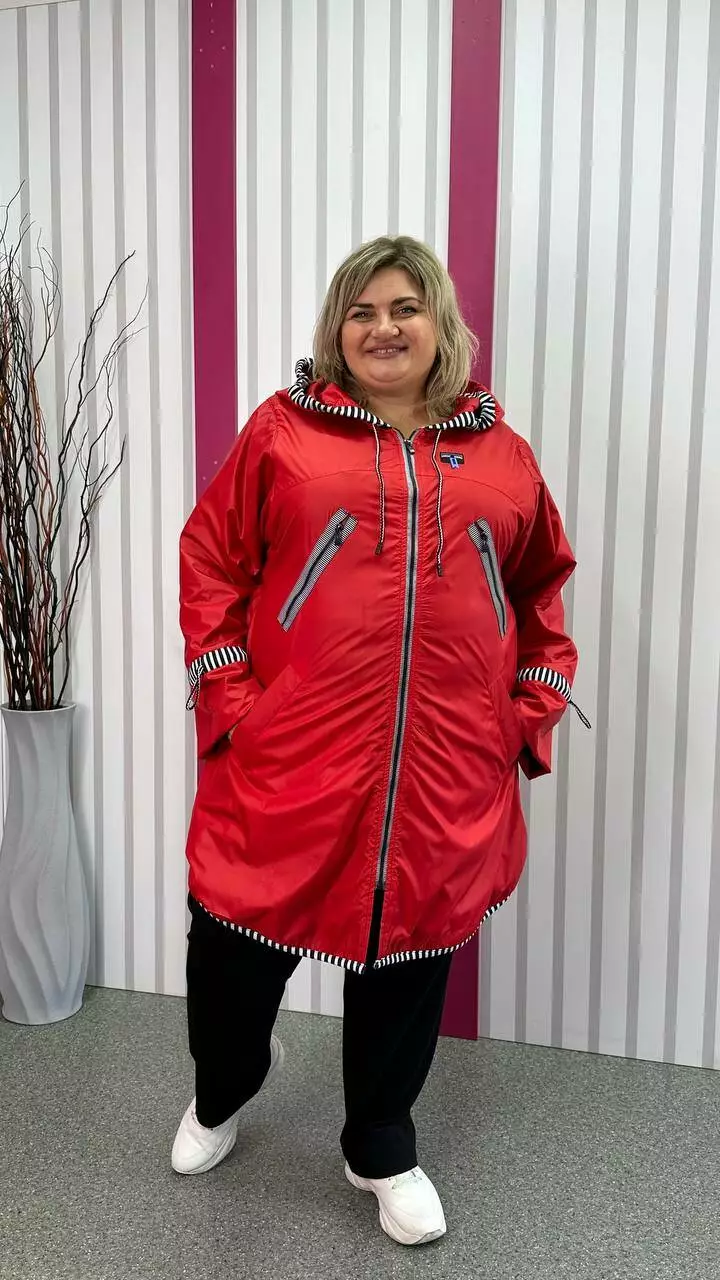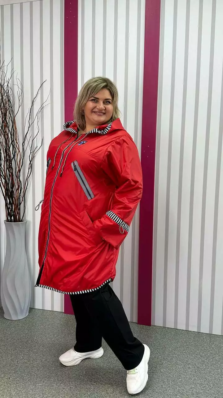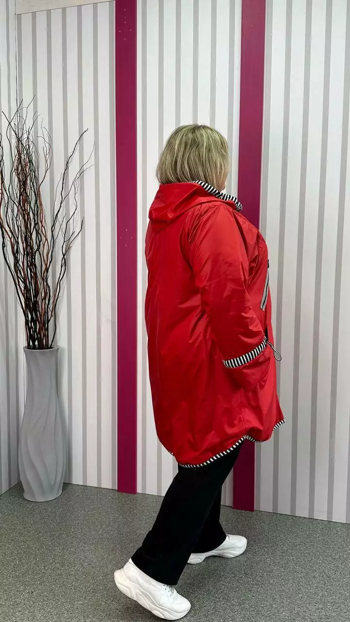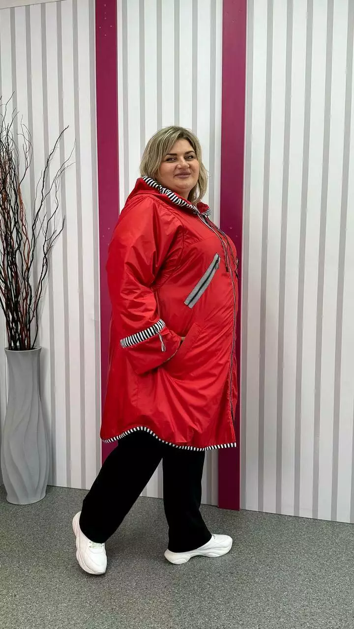 Вітровка на флісі з турецької плащової тканини "лаку" - не промокає, не продувається, м'яка, дуже комфортна. Підкладка-якісний фліс, рукав вшитий окремо, тому підкладка не тягне за одягом, дуже комфортна в носінні. Фасон вільний, по грудях оверсайз, рукав зі спущеною проймою до талії, широкий, в районі пензля ширина регулюється шнурком. З об'ємним капюшоном, кишеня листочка. Якісна турецька змійка в смужку та оздоблення в смужку надають виробу шикарного вигляду.