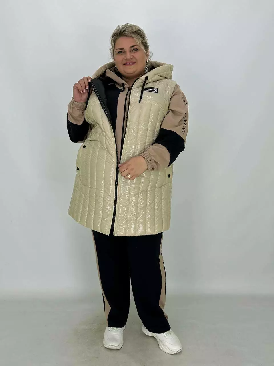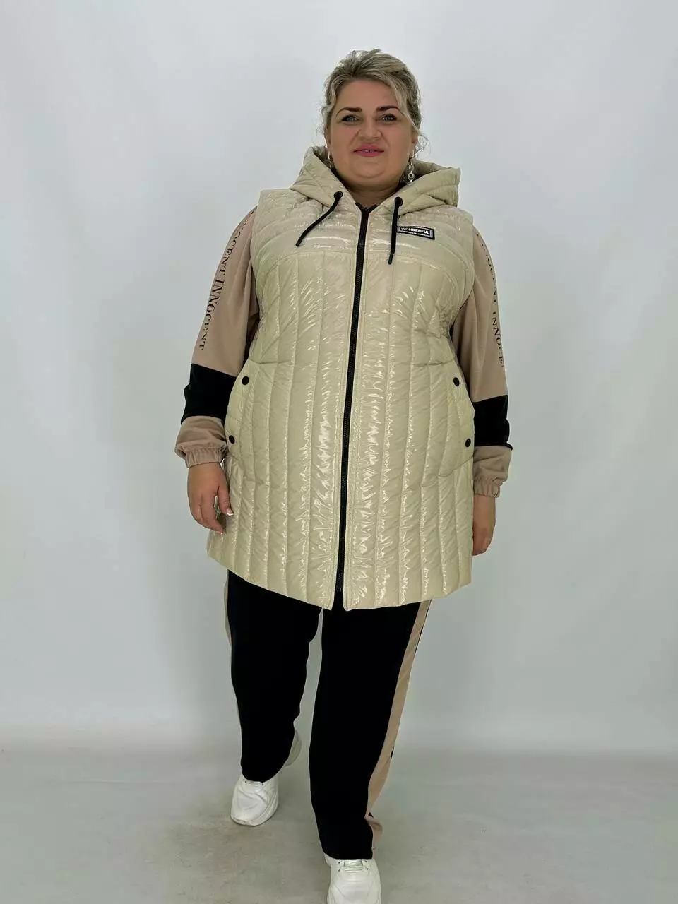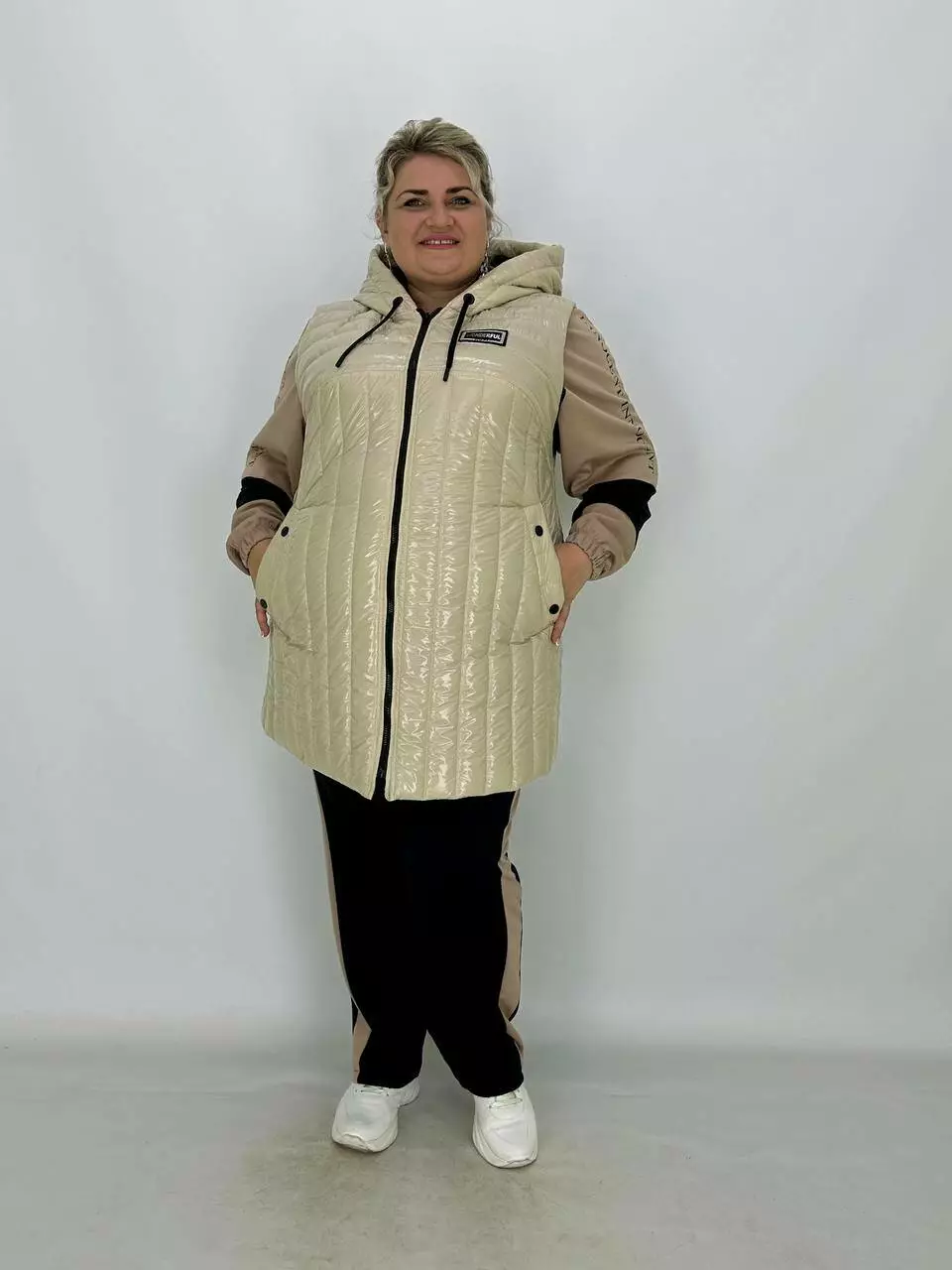 Водонепроникний стьобаний жилет з капюшоном "Монклер" на блискавці з кишенями
