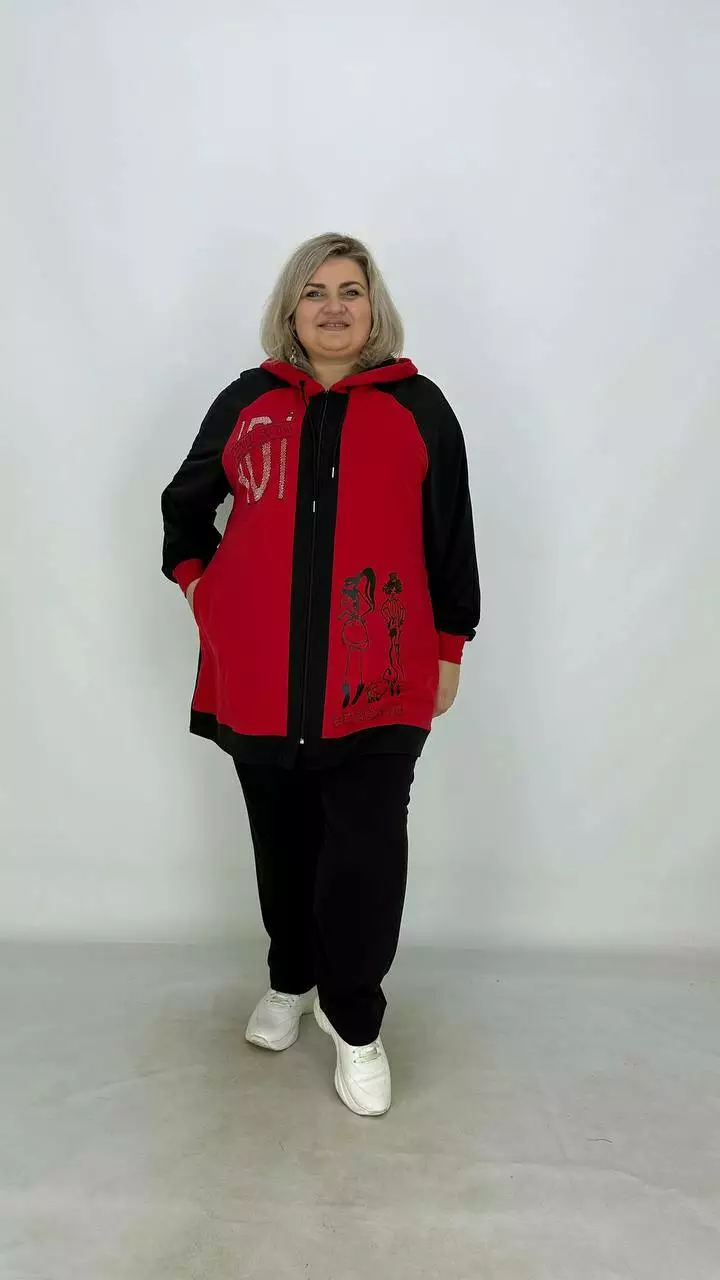 Кофта на змійці з карманами з боків прикрашена якісним накатом.