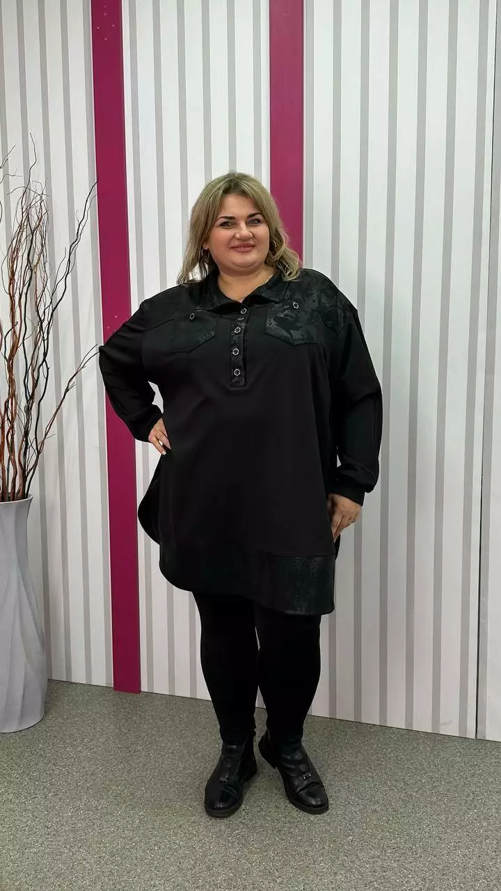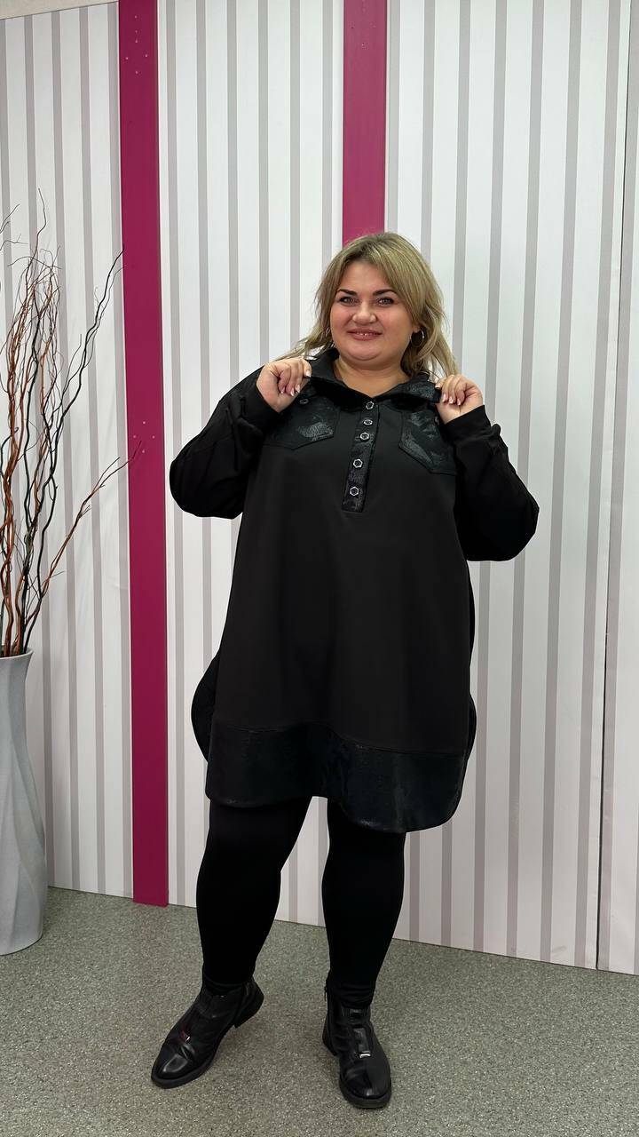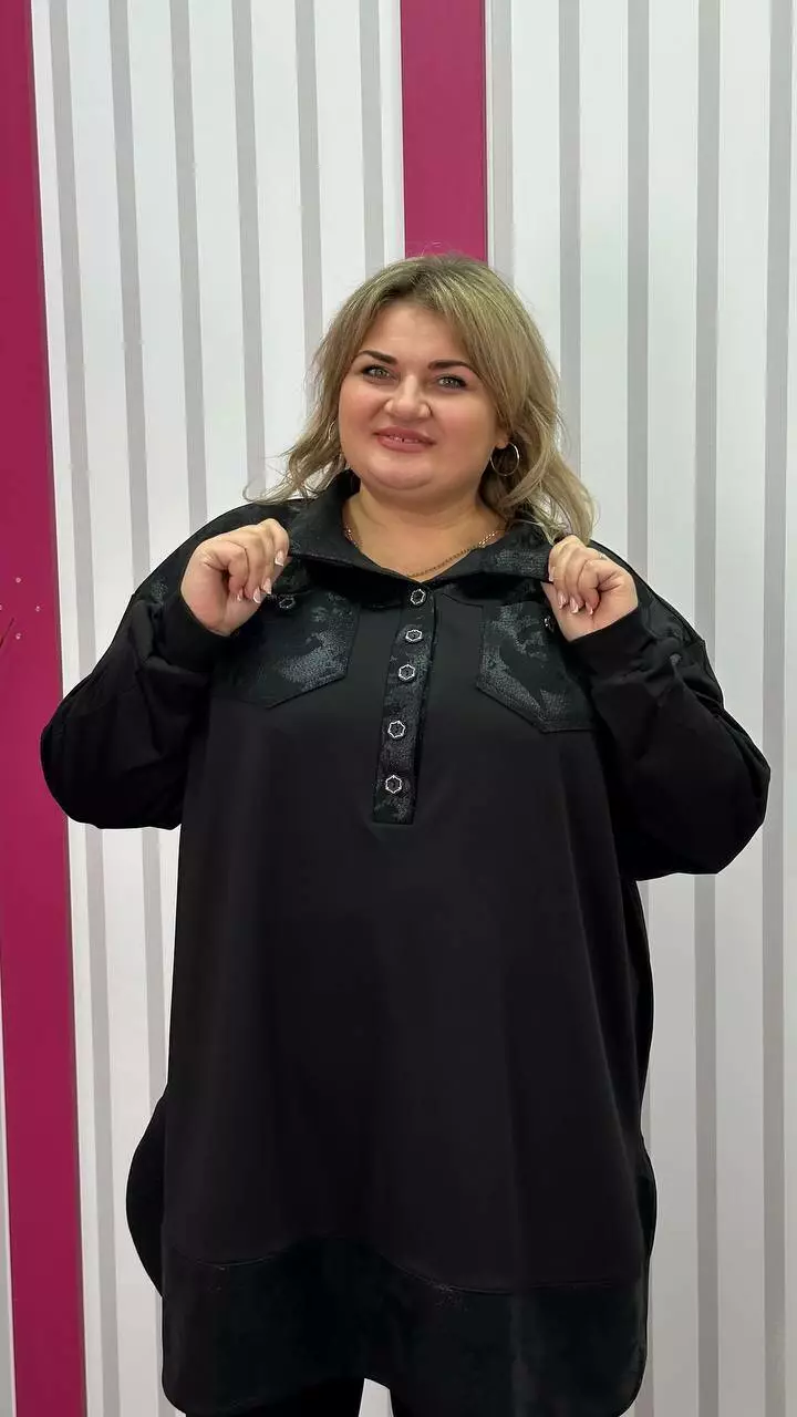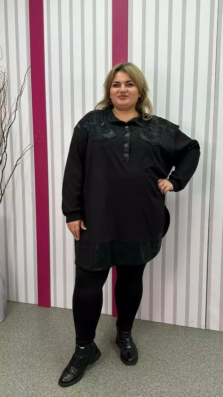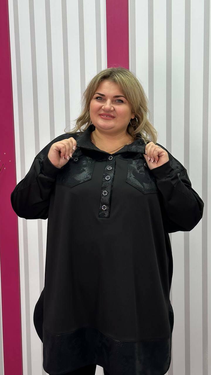 Жіноча подовжена туніка чорна "Комбі" 66-68 70-72 74-76