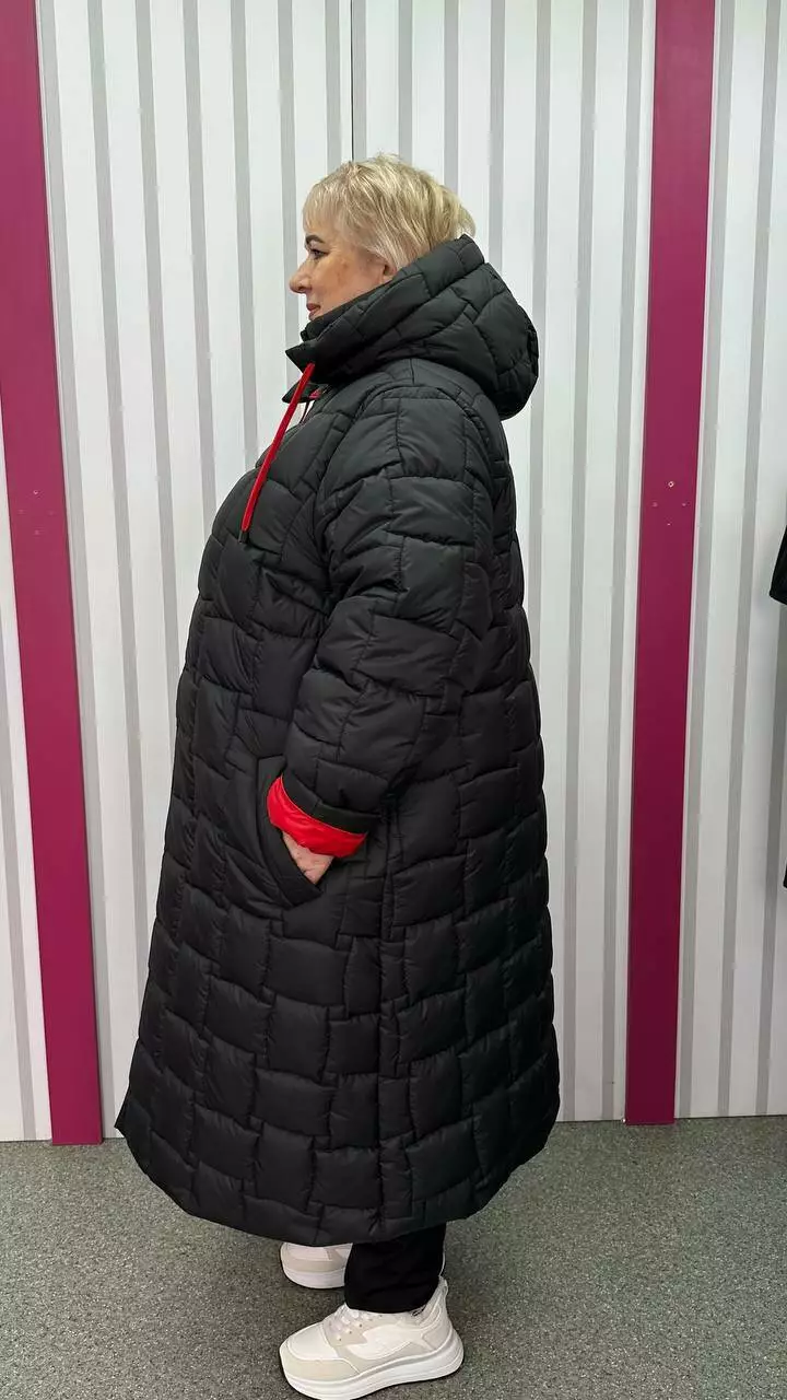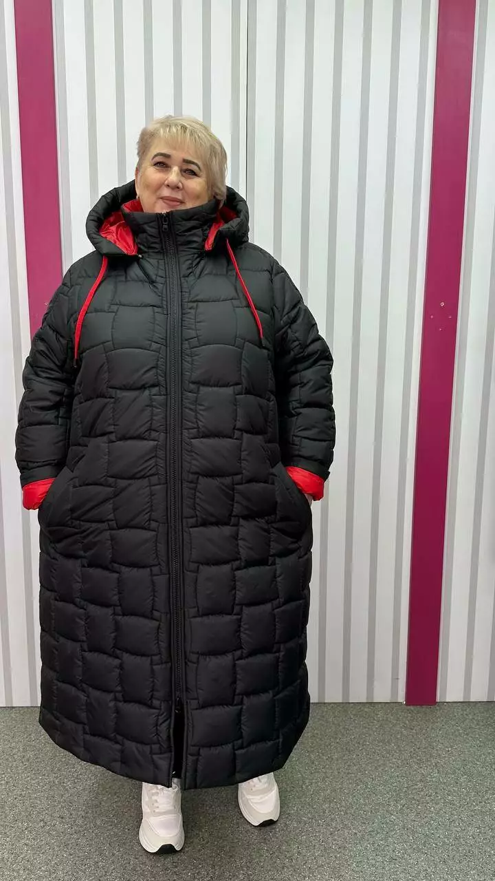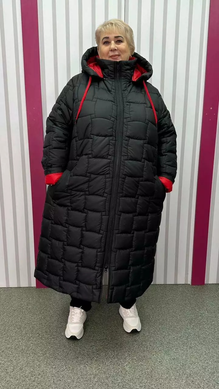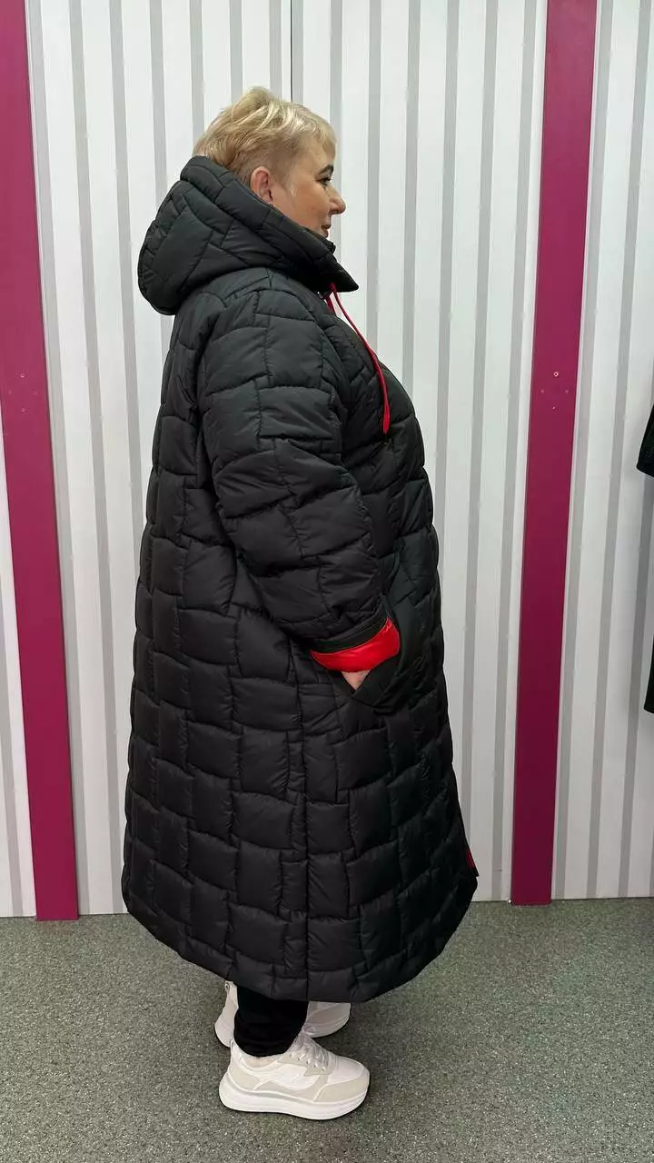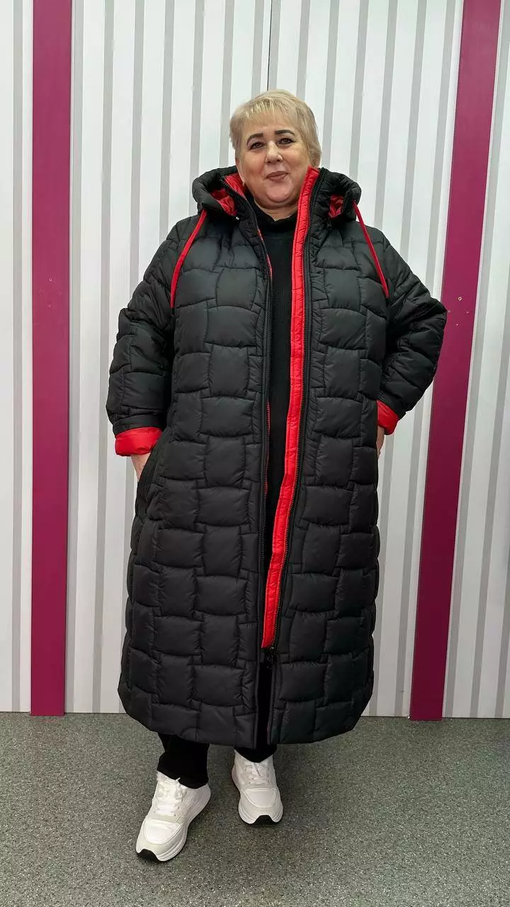 Зимове стьобане подовжене пальто "Бургунді" 66-68 70-72 74-76