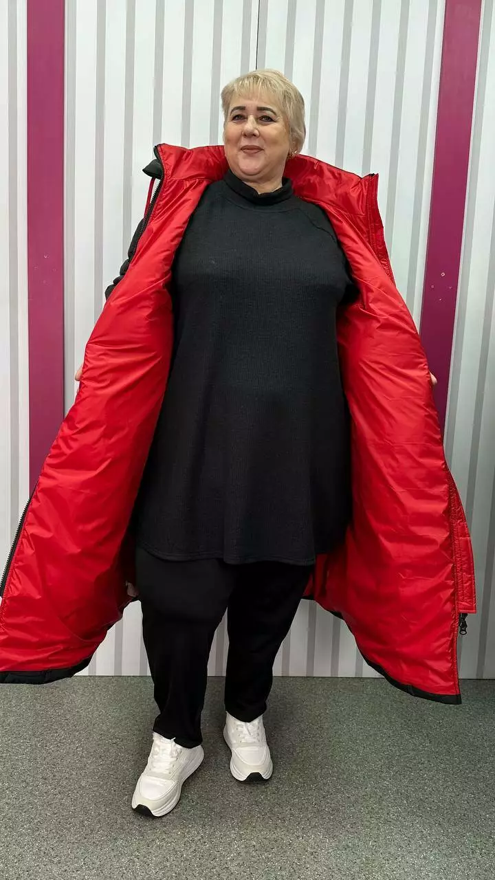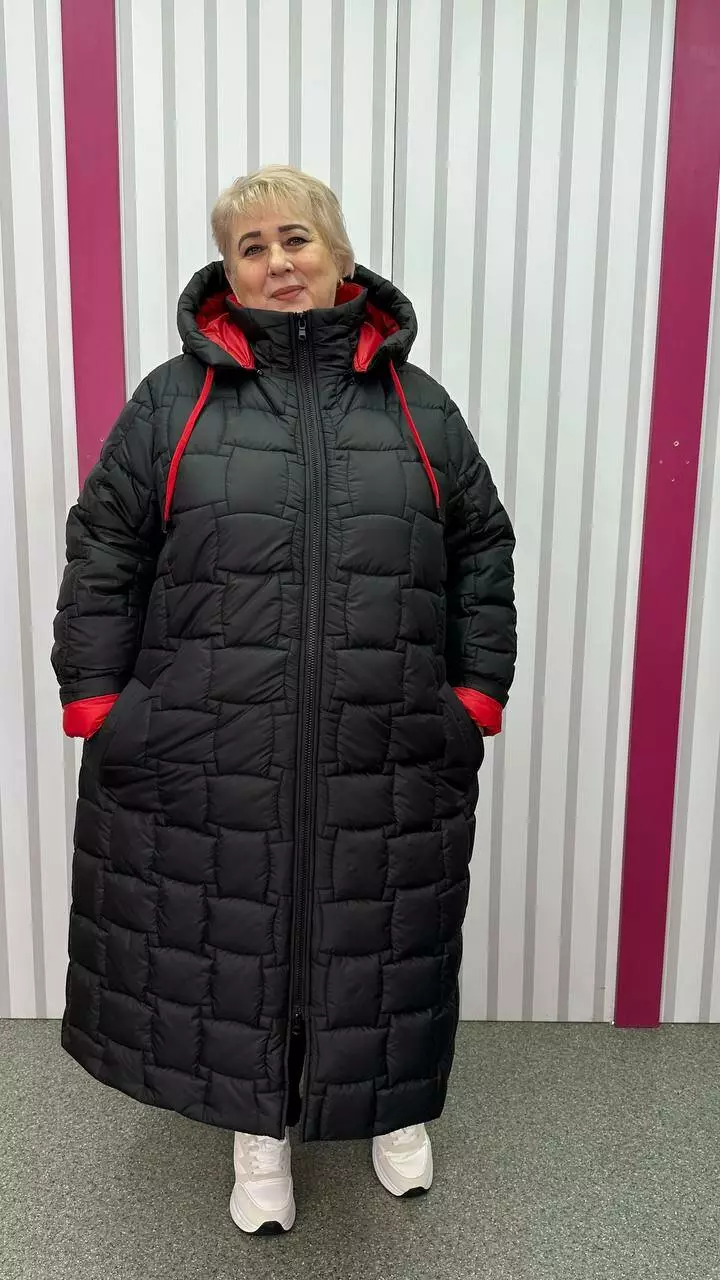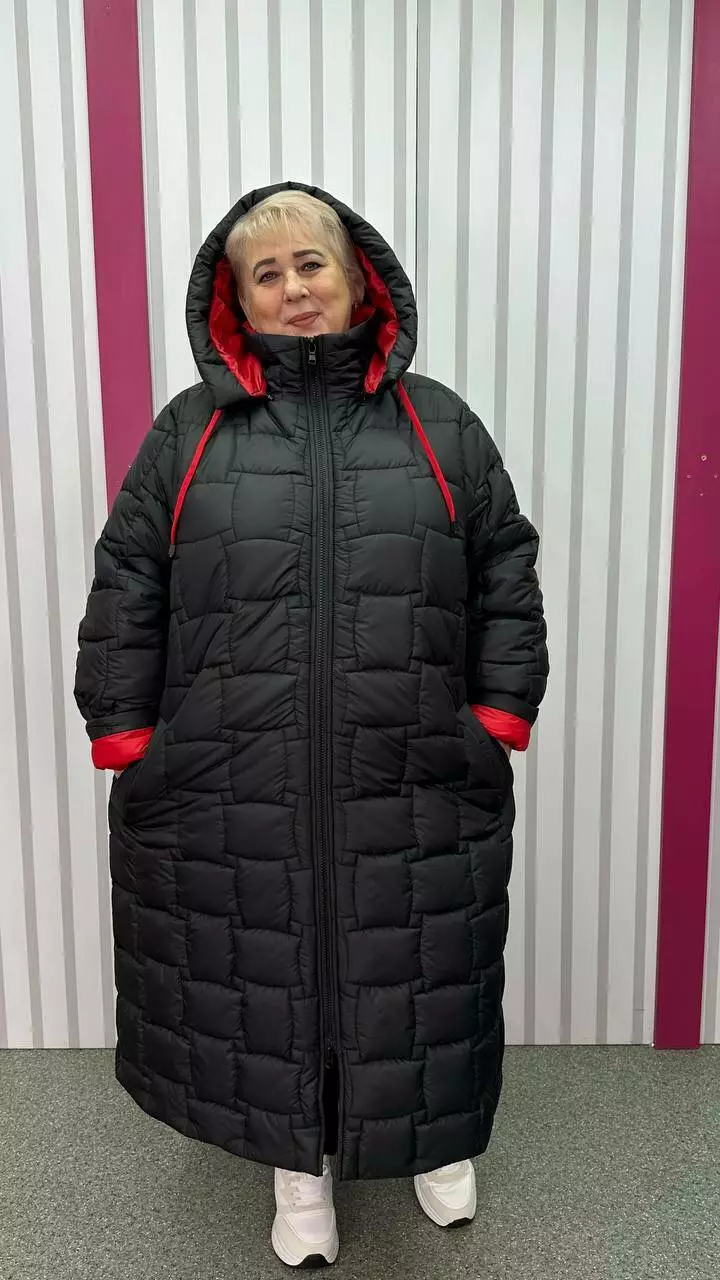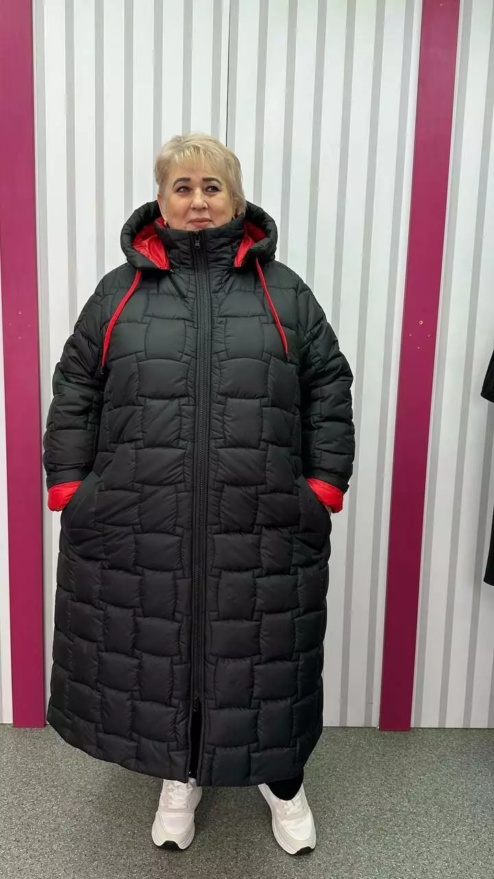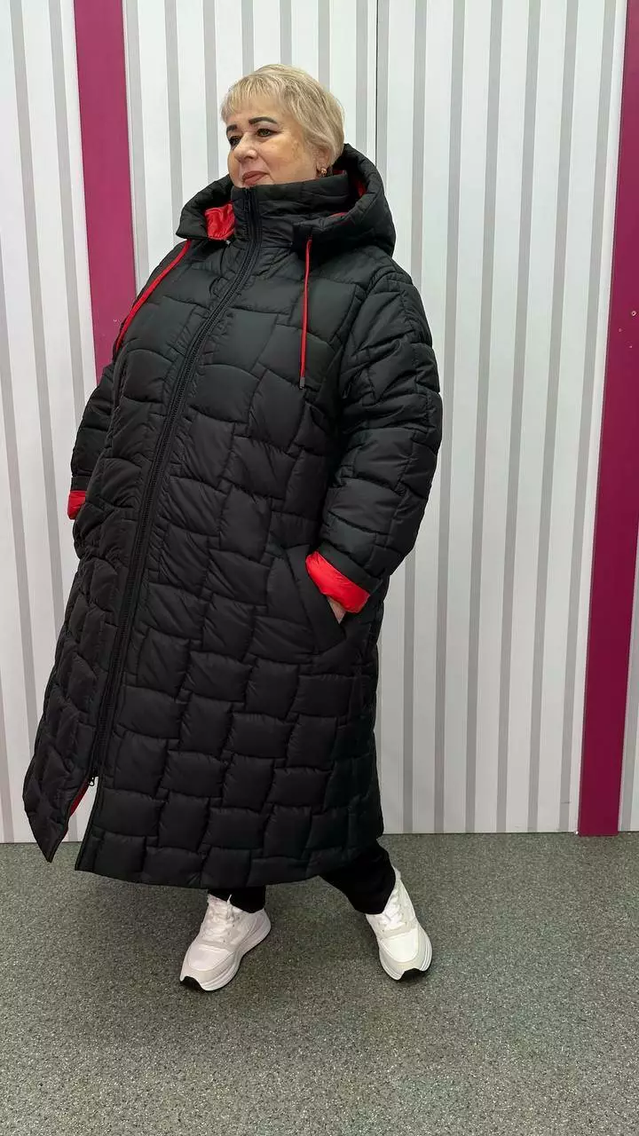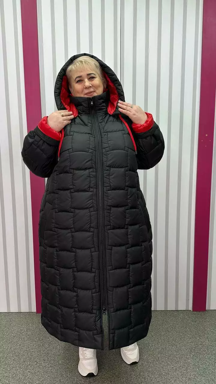 Зимове стьобане подовжене пальто "Бургунді" 66-68 70-72 74-76