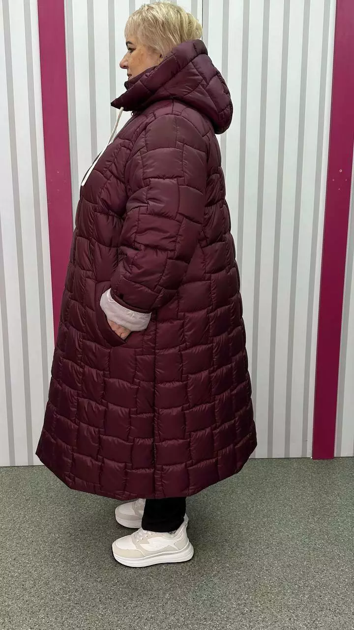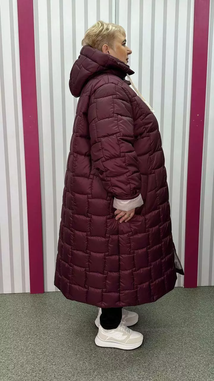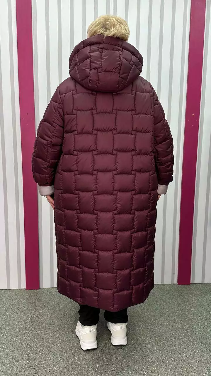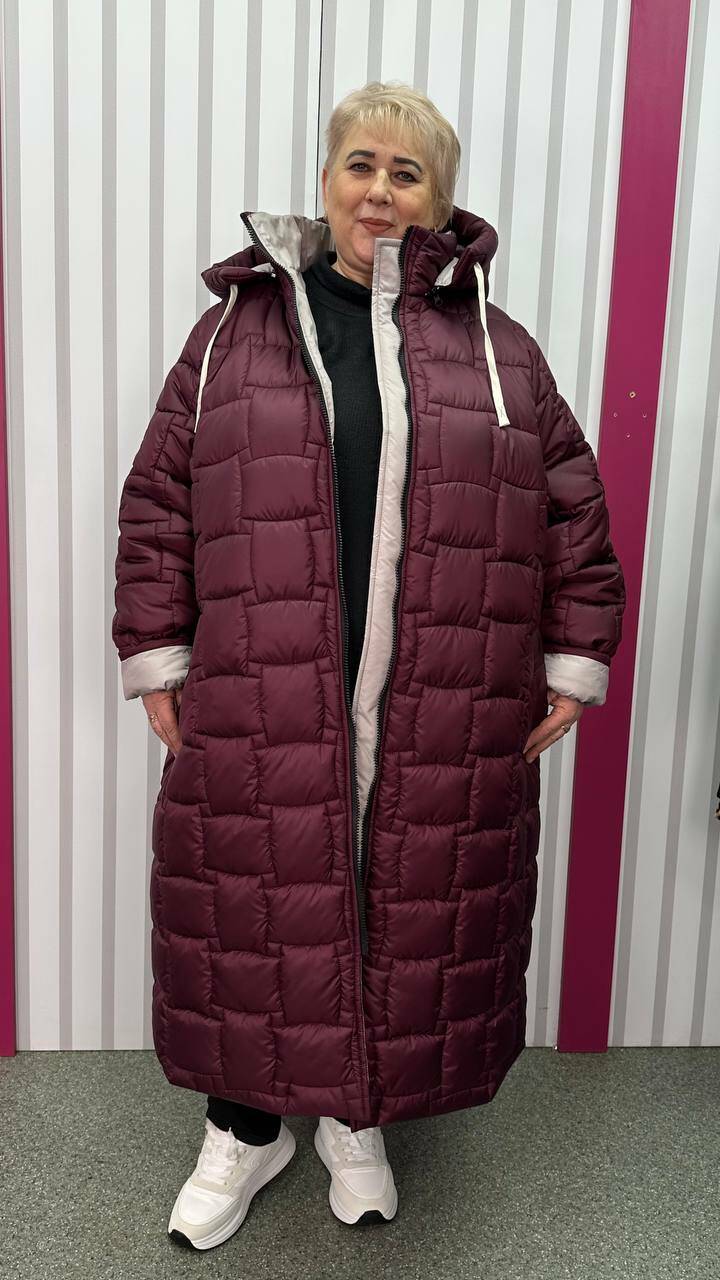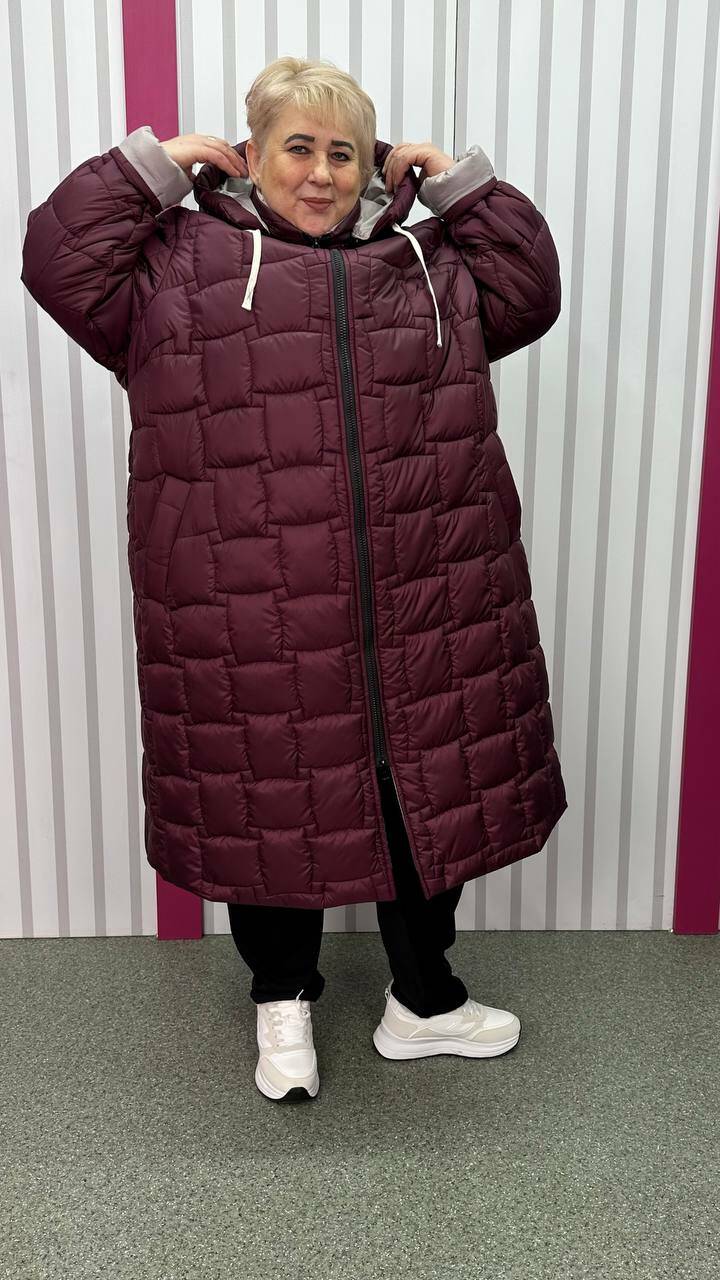 Зимове стьобане подовжене пальто "Бургунді" 66-68 70-72 74-76