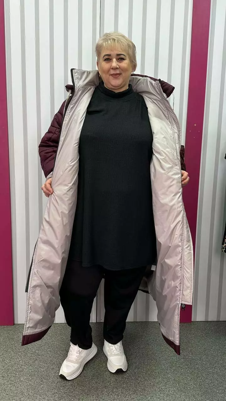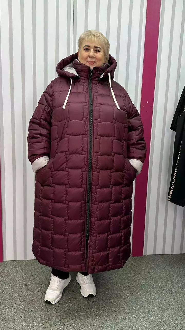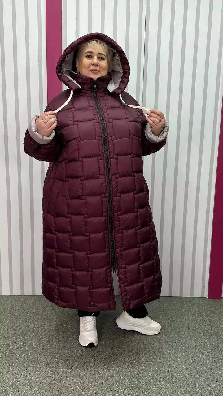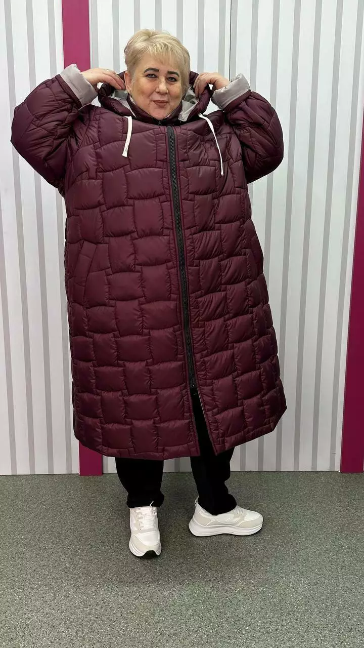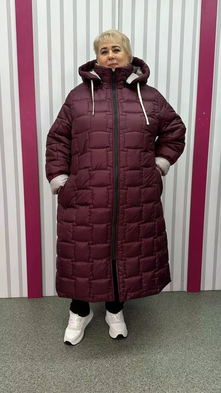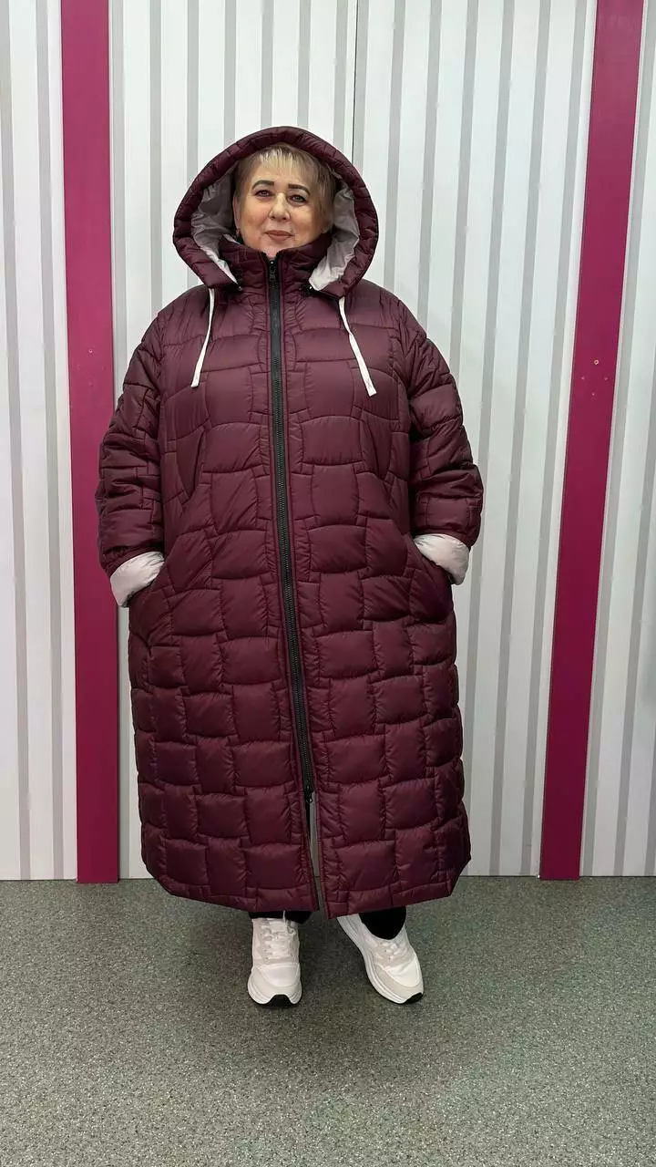 Зимове стьобане подовжене пальто "Бургунді" 66-68 70-72 74-76