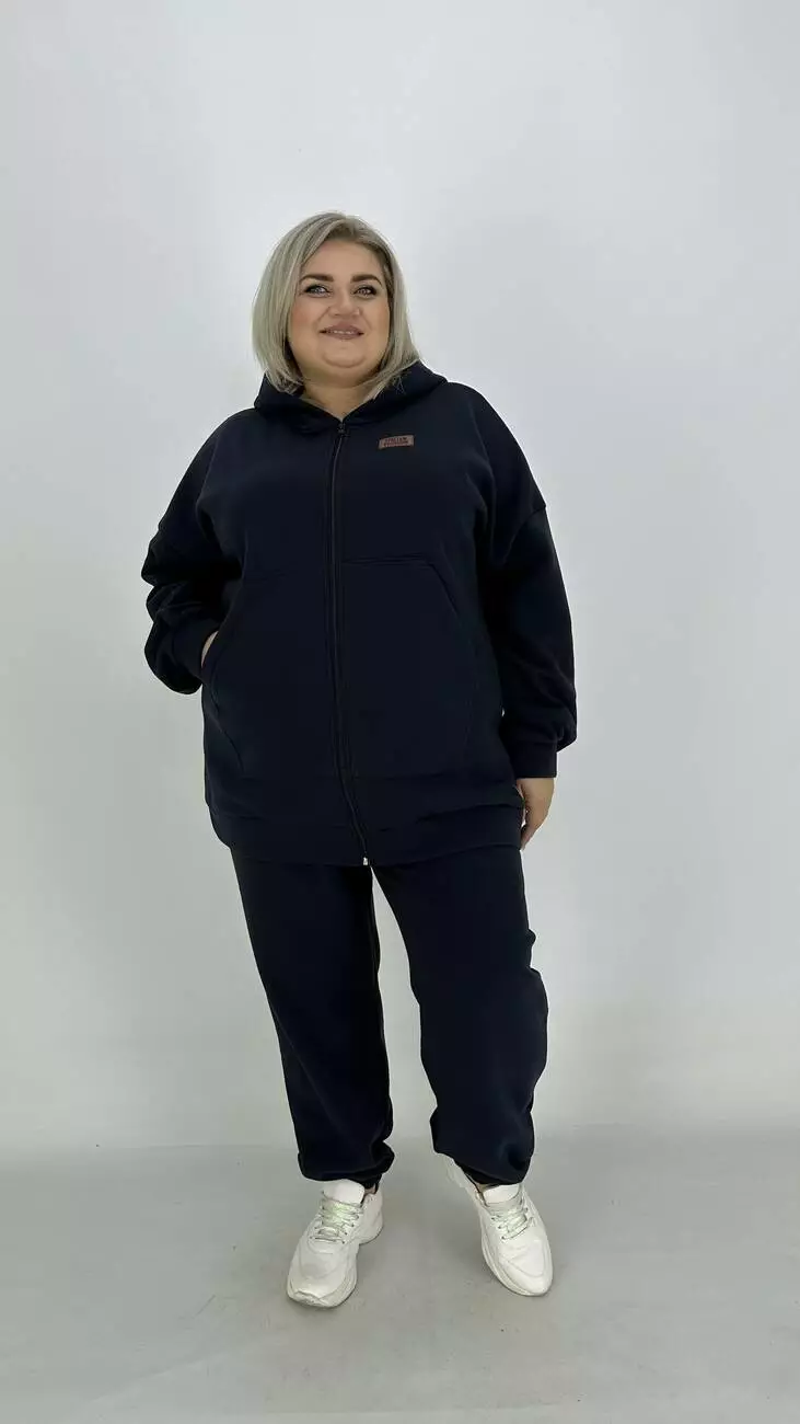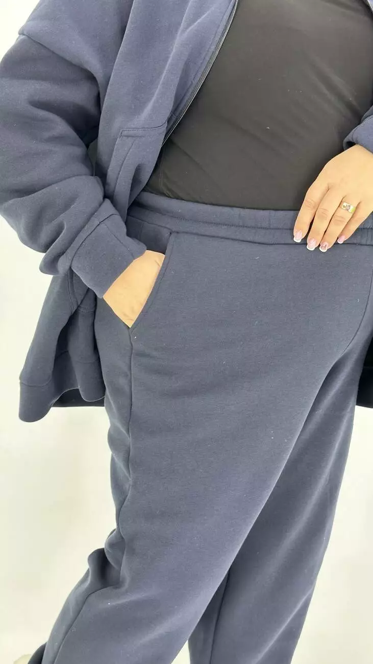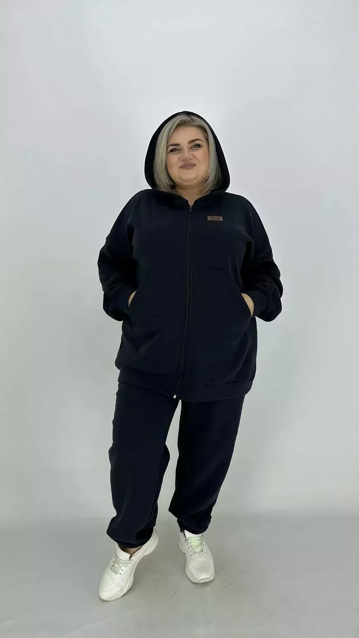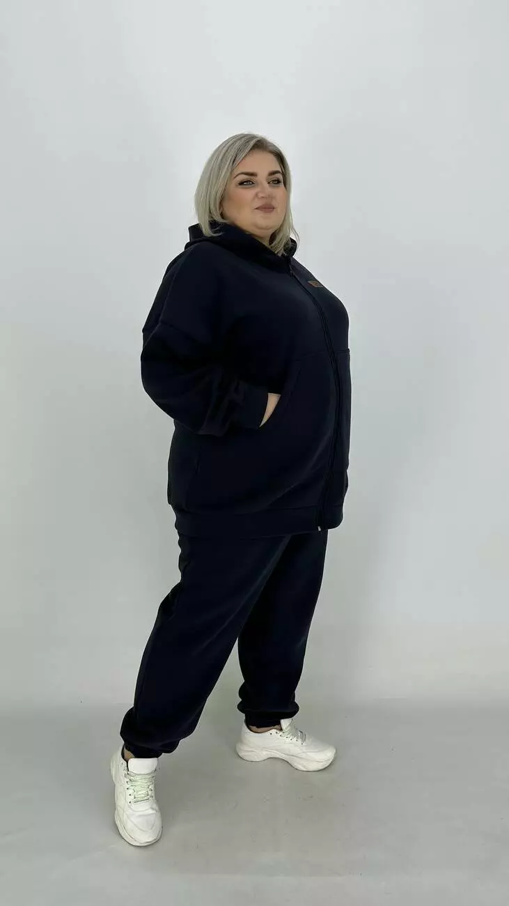 Зручний костюм із тринітки з начосом для фігури з широкими стегнами.