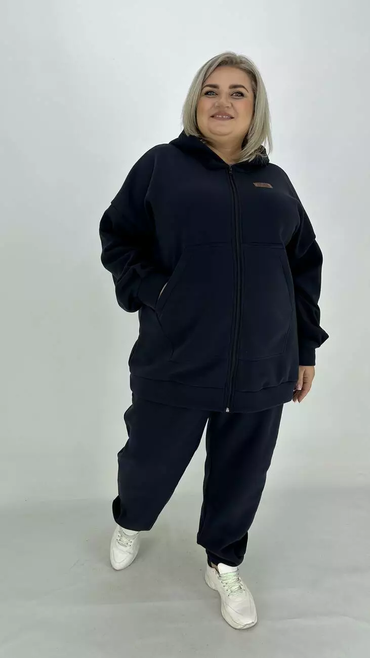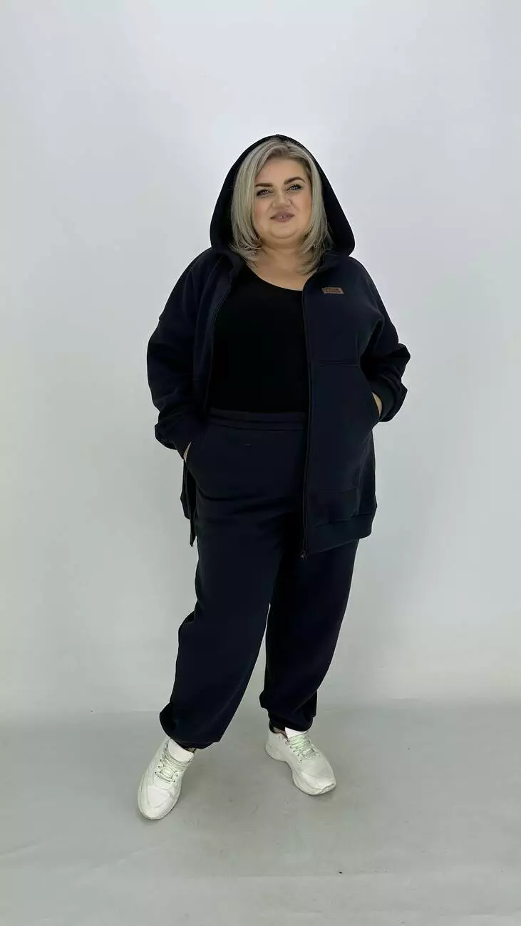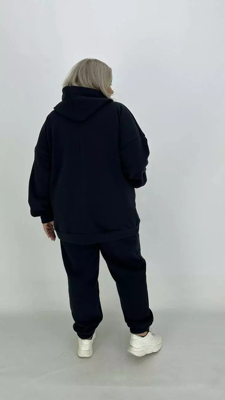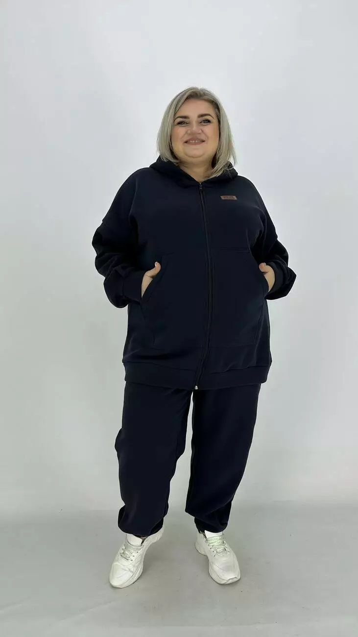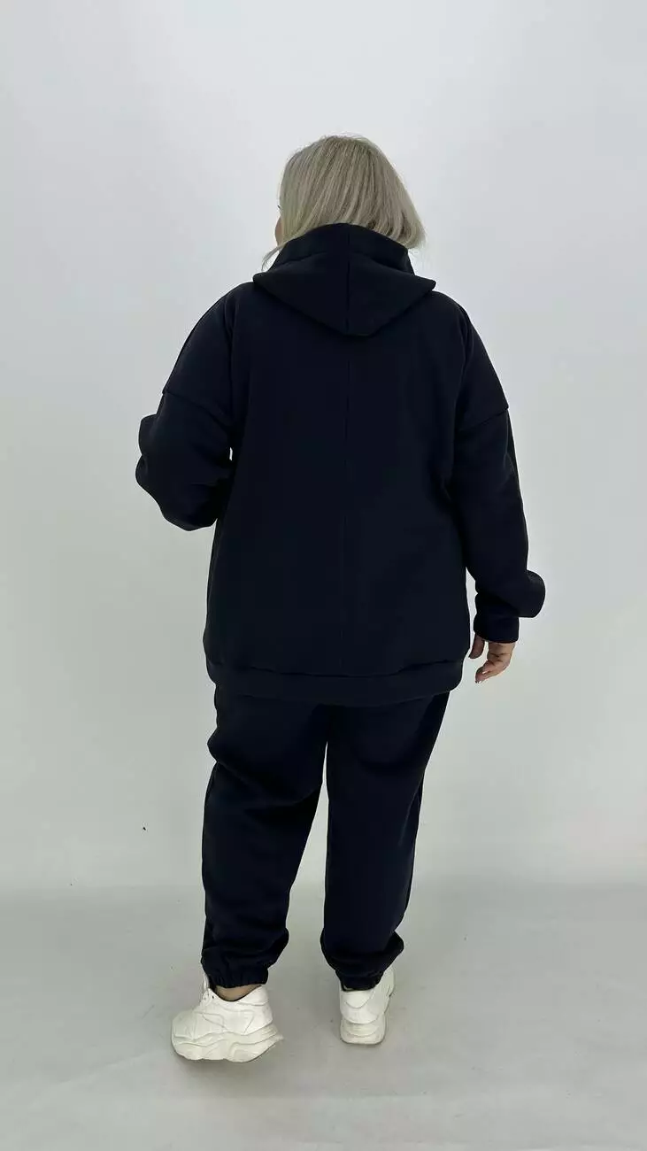 Зручний костюм із тринітки з начосом для фігури з широкими стегнами.